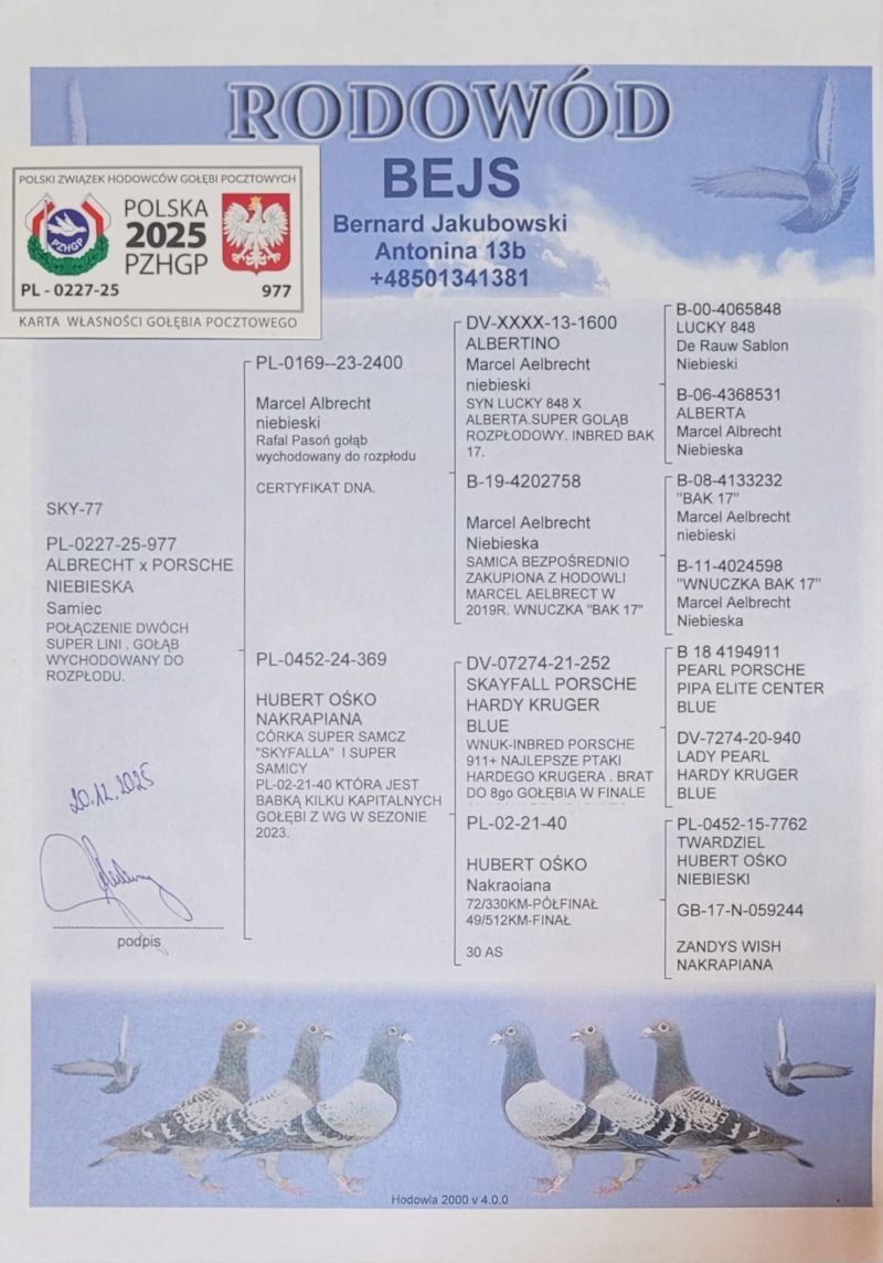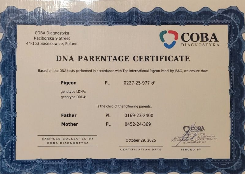 PL-0227-25-977 Marcel Aelbrecht x Hubert Ośko - certyfikat DNA