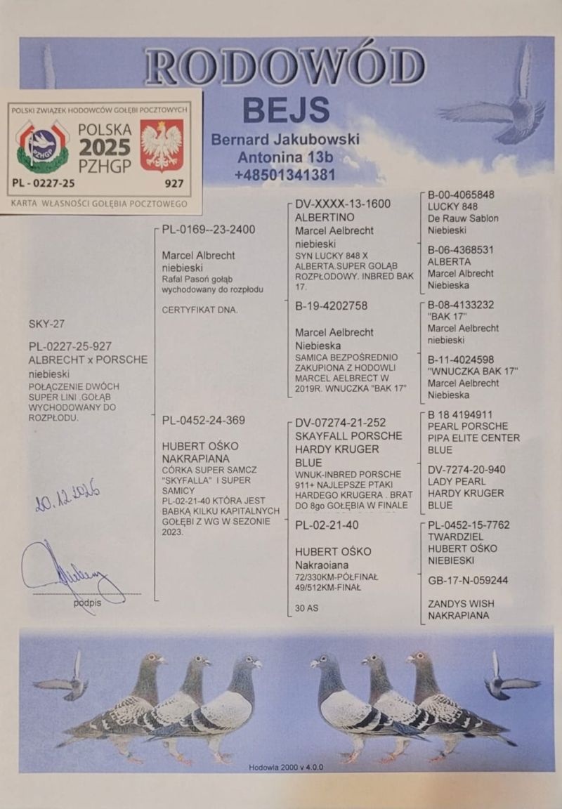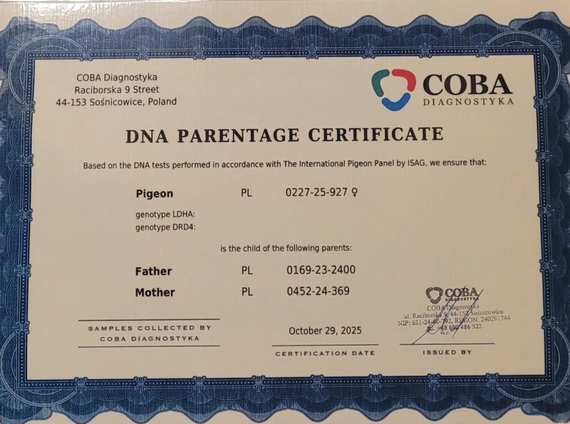 PL-0227-25-927 Rafał Pasoń x Hubert Ośko - certyfikat DNA