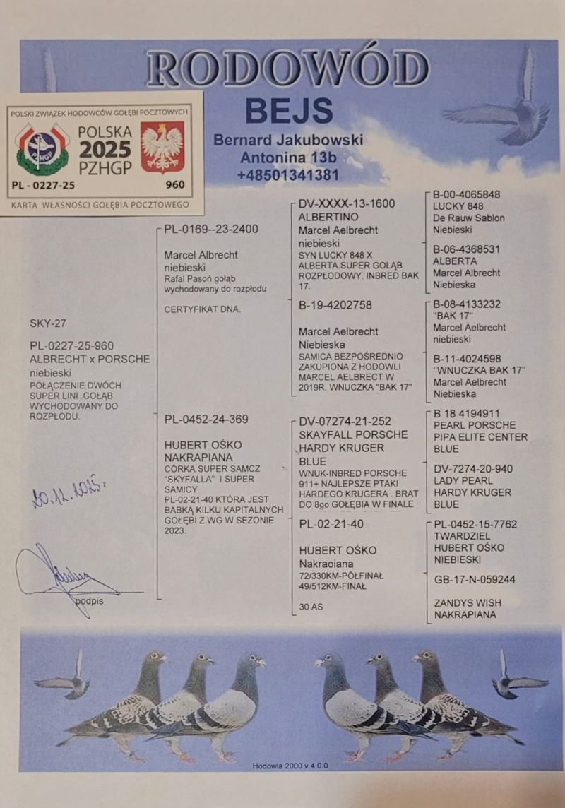 PL-0227-25-960 Rafał Pasoń x Hubert Ośko - certyfikat DNA