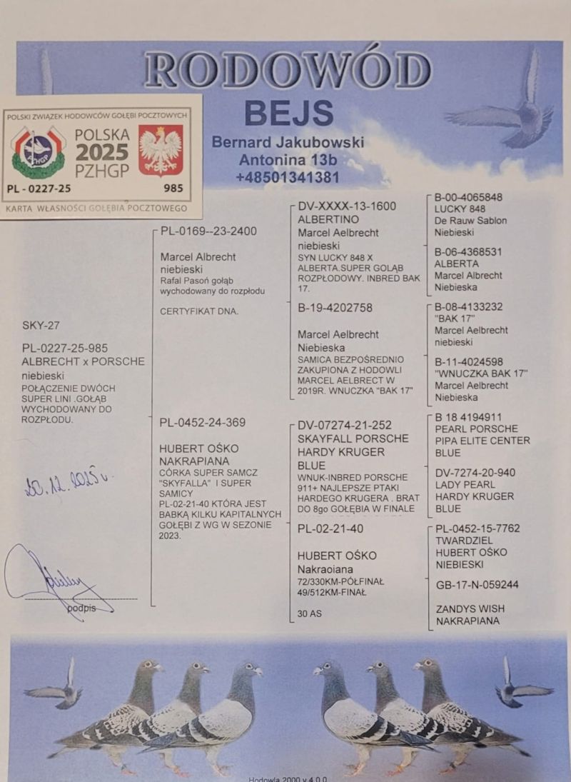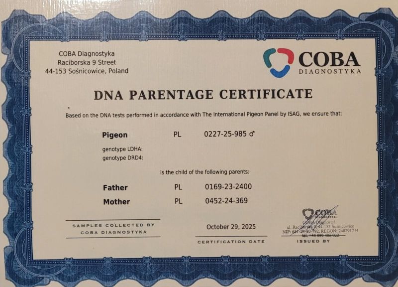 PL-0227-25-985 Rafał Pasoń x Hubert Ośko - certyfikat DNA