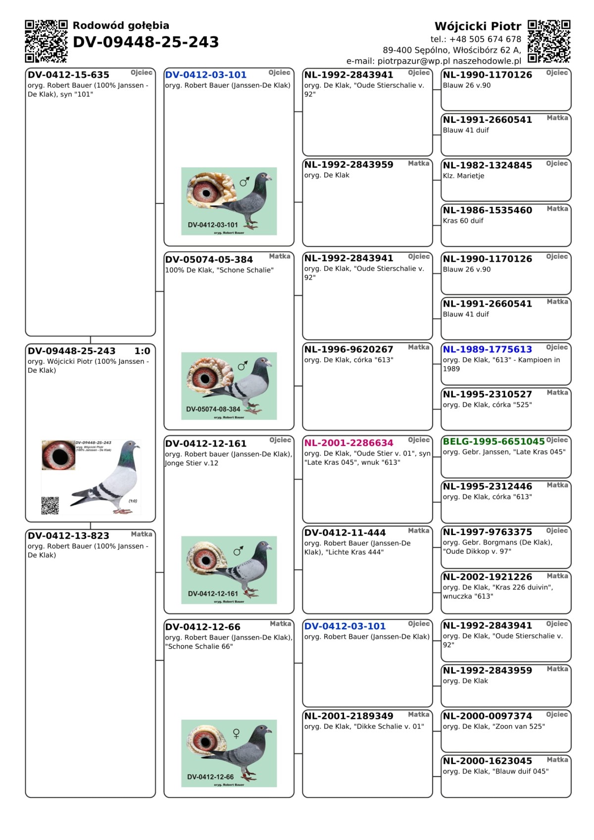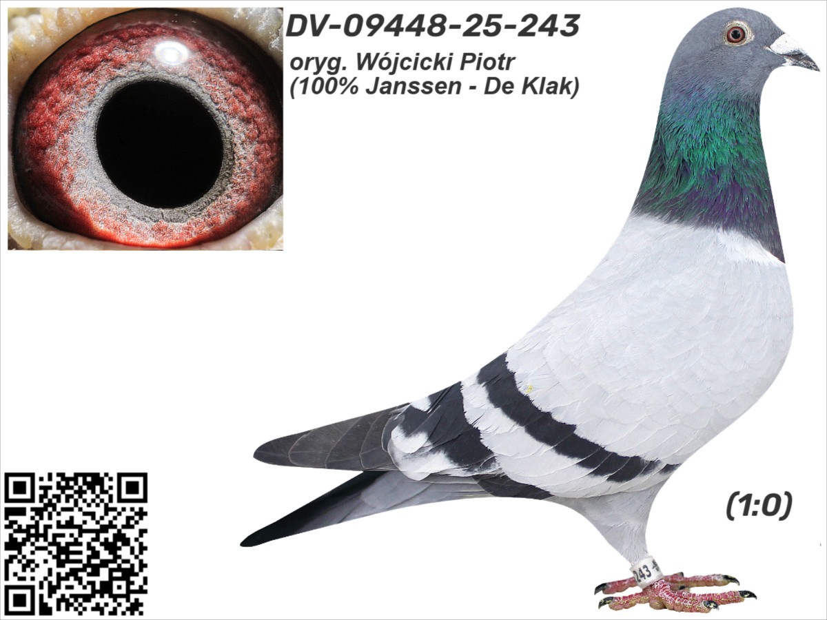 oryg. Wójcicki Piotr (100% Janssen - De Klak) Szczegóły pochodzenia w rodowodzie i załączonych materiałach. Więcej informacji o gołębiach i transporcie pod nr tel.: +48 505 674 678.