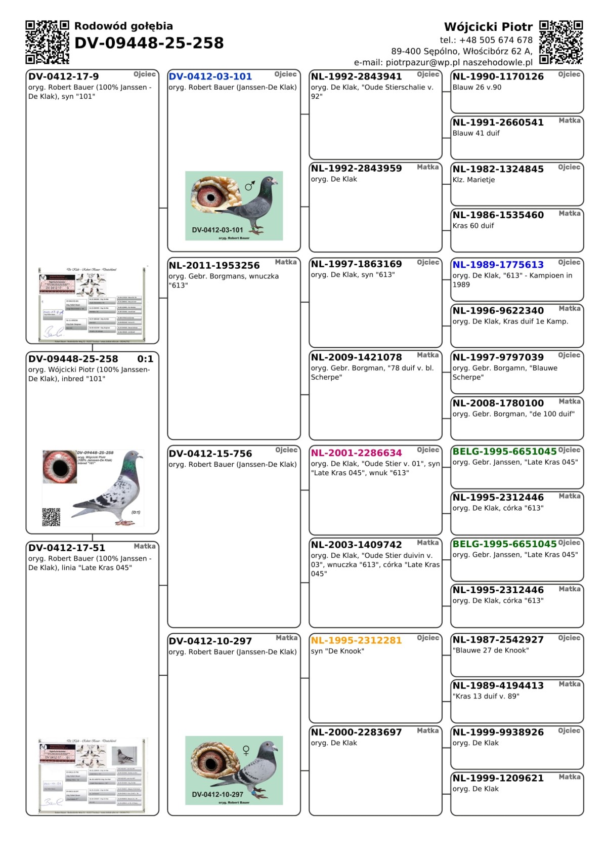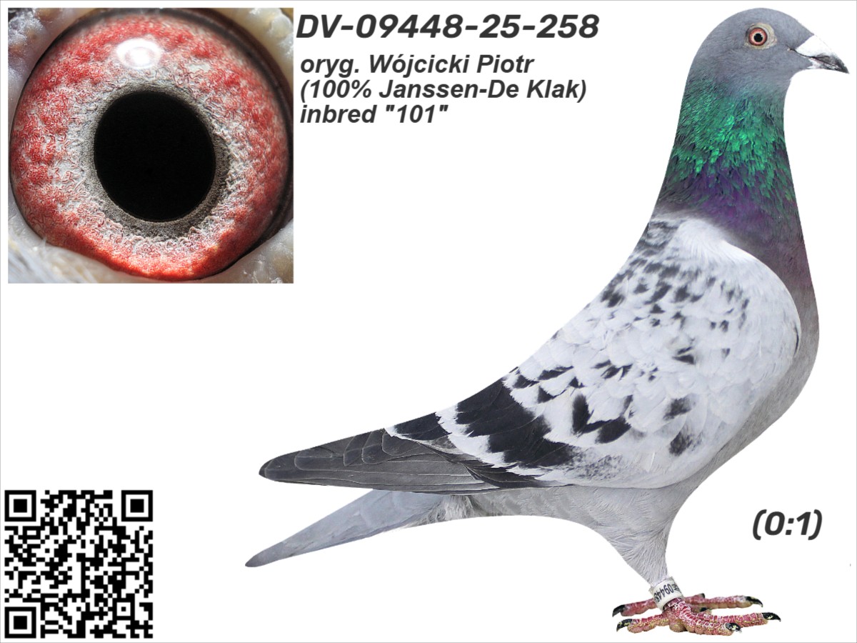 oryg. Wójcicki Piotr (100% Janssen-De Klak), inbred "101" Szczegóły pochodzenia w rodowodzie i załączonych materiałach. Więcej informacji o gołębiach i transporcie pod nr tel.: +48 505 674 678.