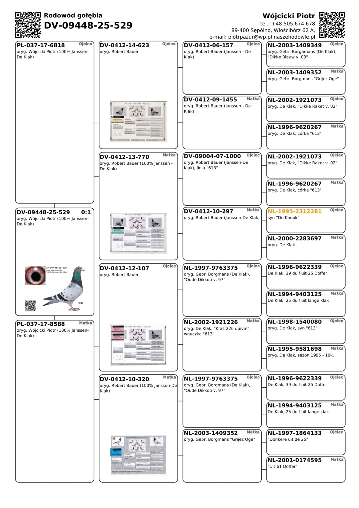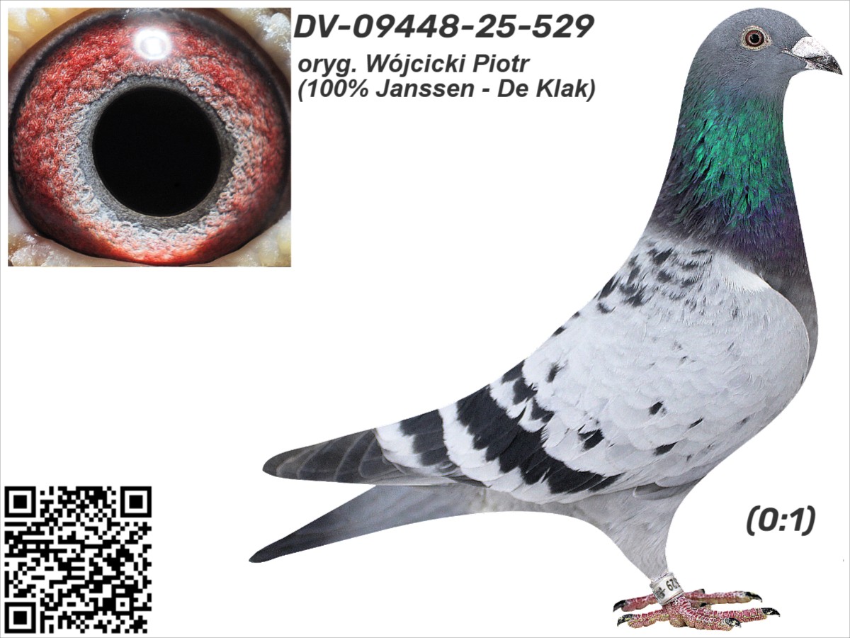 oryg. Wójcicki Piotr (100% Janssen - De Klak) Szczegóły pochodzenia w rodowodzie i załączonych materiałach. Więcej informacji o gołębiach i transporcie pod nr tel.: +48 505 674 678.
