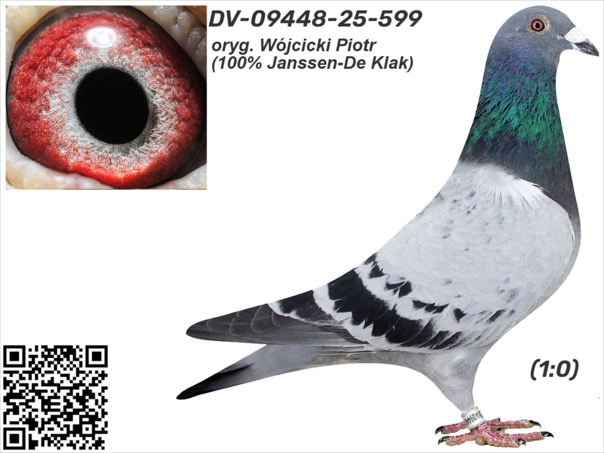oryg. Wójcicki Piotr (100% Janssen - De Klak) Szczegóły pochodzenia w rodowodzie i załączonych materiałach. Więcej informacji o gołębiach i transporcie pod nr tel.: +48 505 674 678.