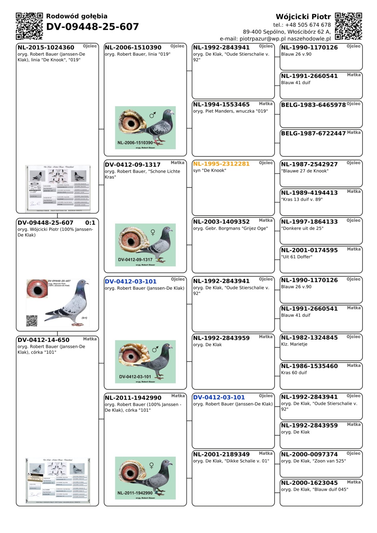 oryg. Wójcicki Piotr (100% Janssen - De Klak) Szczegóły pochodzenia w rodowodzie i załączonych materiałach. Więcej informacji o gołębiach i transporcie pod nr tel.: +48 505 674 678.