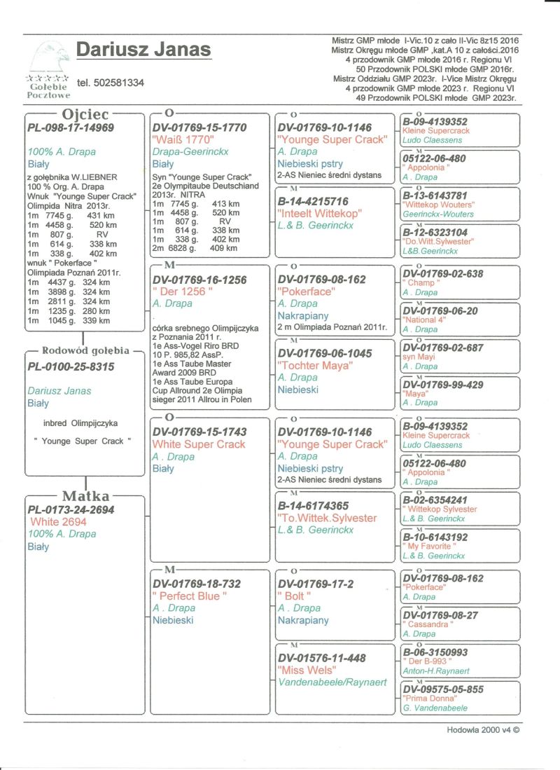 Oryginalny gołąb z hodowli Dariusz Janas . Szczegóły pochodzenia w rodowodzie . Więcej informacji pod nr. tel . 502581334 .... Wystawiany gołąb to prawdopodobnie samiec ......... koszt transportu do 3 szt. 120 zł.