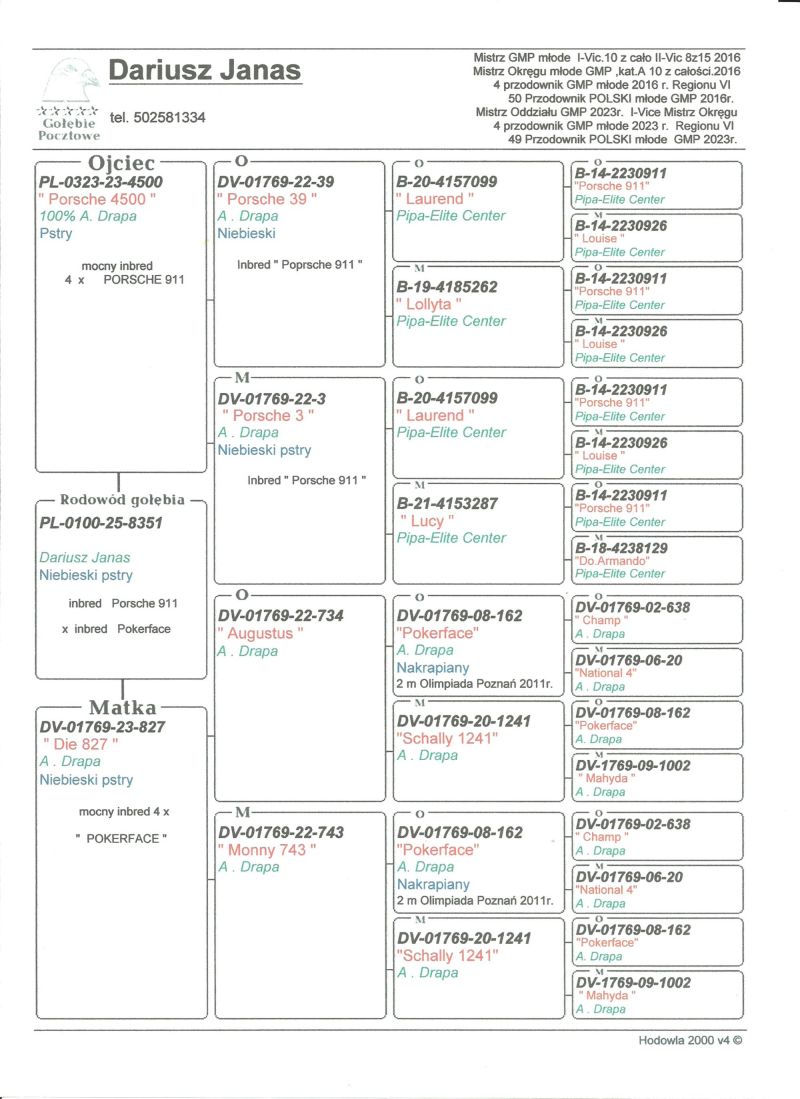 Oryginalny gołąb z hodowli Dariusz Janas . Szczegóły pochodzenia w rodowodzie . Więcej informacji pod nr. tel . 502581334 .... Wystawiany gołąb to prawdopodobnie samiec......... koszt transportu do 3 szt. 120 zł.