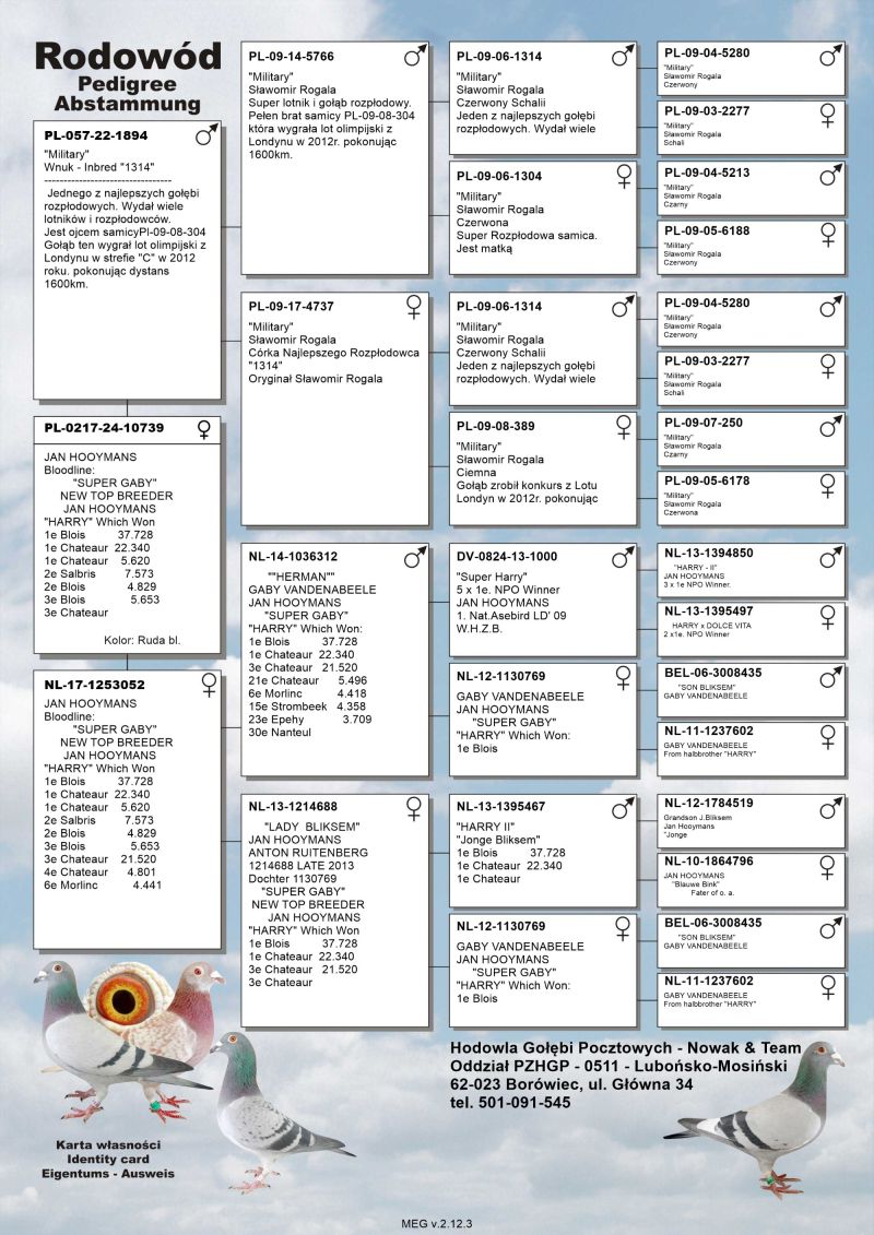 Oryginalny gołąb z hodowli Nowak & Team, szczegóły pochodzenia, rodowód poniżej. Transport gołębi prywatnym kurierem.