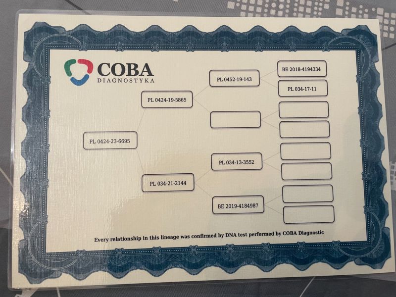 Płeć: samiec Hodowca - rasa: Ireneusz Kowalczyk Zakończenie: 6.01.2026 godz. 20:12