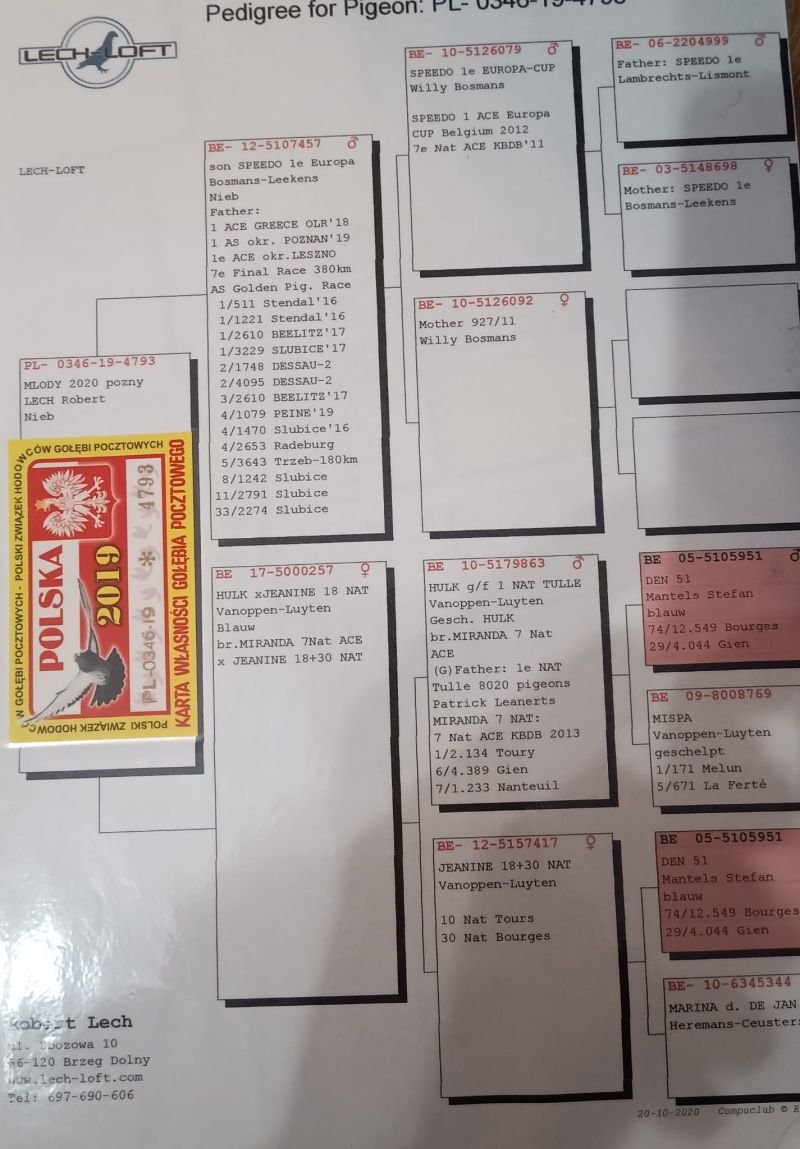 Samica córka Super rozpłodowaca SPEEDO podstawowego gołębia rozpłodowego. Możliwość odbioru gołąbka 10.01.2026 na wystawie ogólnopolskiej w Katowicach. Wysyłka kurierem lub odbiór osobisty
