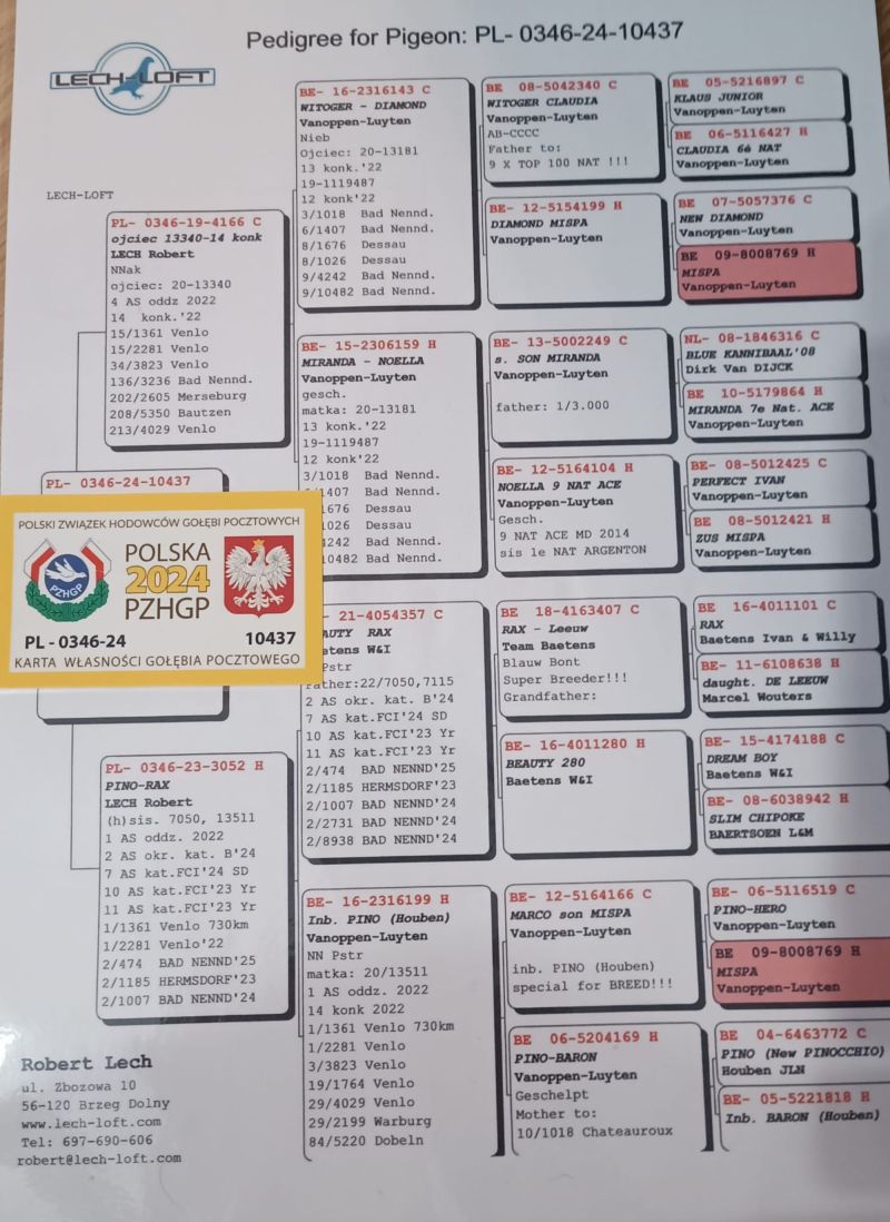 PL-0346-24-10437 R.Lech Super pochodzenia Linia RAX x Vanoppen-Luyten