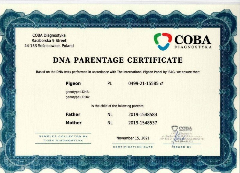 PL-0499-21-15585 oryg.Adam Kosiorowski-100% Klinkenberg cert. DNA
