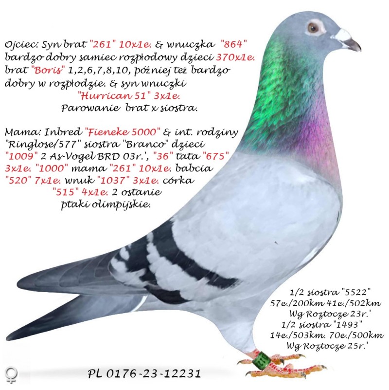 Więcej informacji pod nr tel.: 500522211. Gratis wybierany losowo, wysyłka po uzgodnieniu prywatnym kurierem lub odbiór osobisty. Na grafice przykładowe wyniki naszych gołębi.