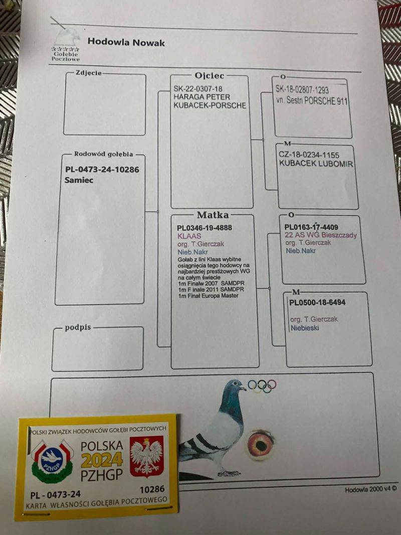 samiec z 2024 roku z Gołębi Tadeusz Gierczak &