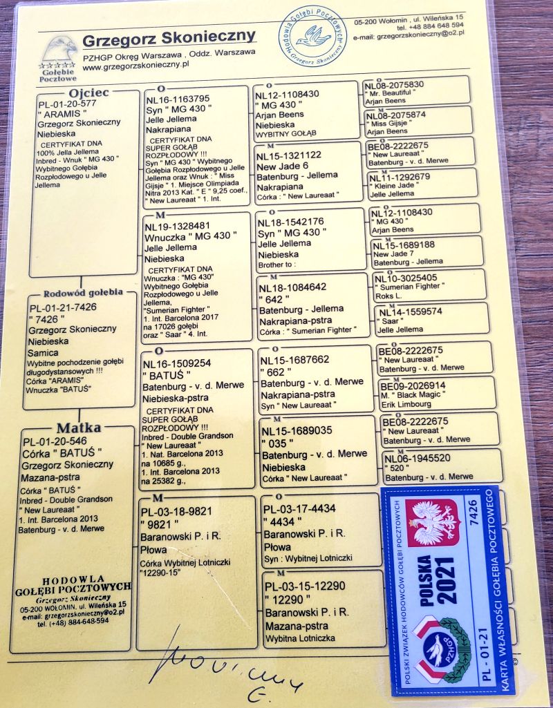 Oryginalny gołab z hodowli Grzegorza Skoniecznego. Szczegóły pochodzenia w rodowodzie. Więcej informacji pod nr tel.: 888 330 449 *Transport we własnym zakresie