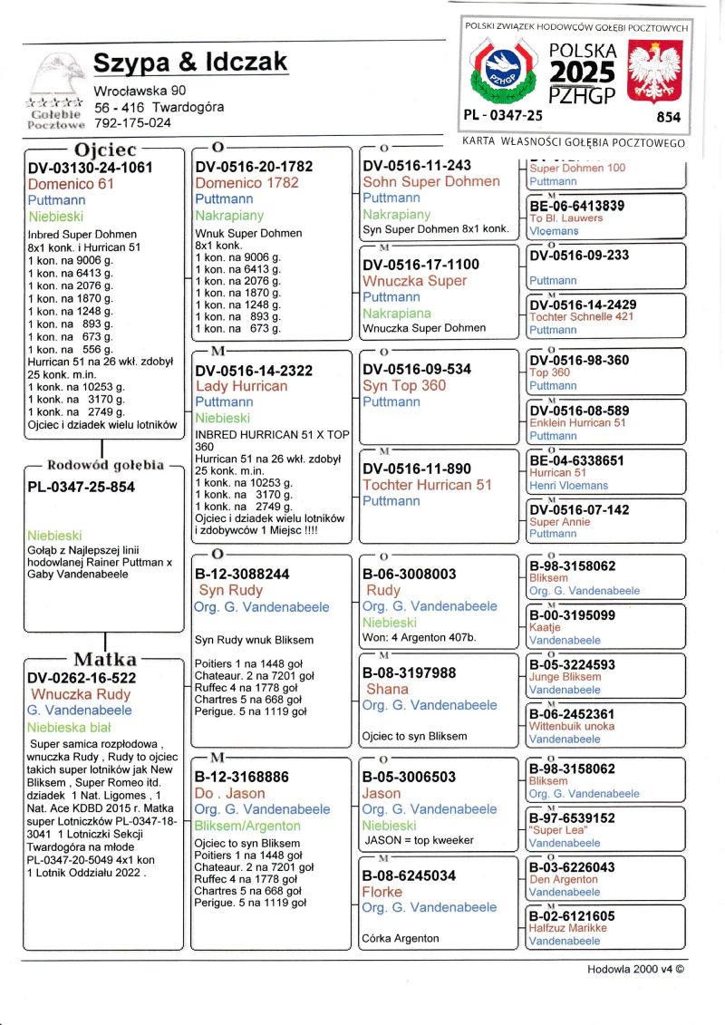 Profesjonalna hodowla z wieloletnim doświadczeniem, posiadająca w swoim stadzie materiał najwyższej światowej klasy. Więcej informacji w załączonych materiałach oraz pod nr tel. 792-175-024 Oferowany gołąb to prawdopodobnie SAMIEC. Płeć pisana orientacyjnie Wysyłka 100 zł