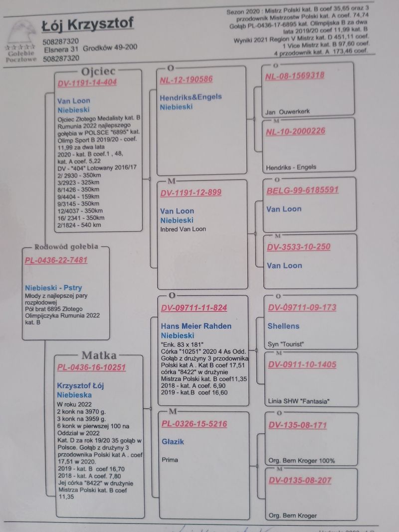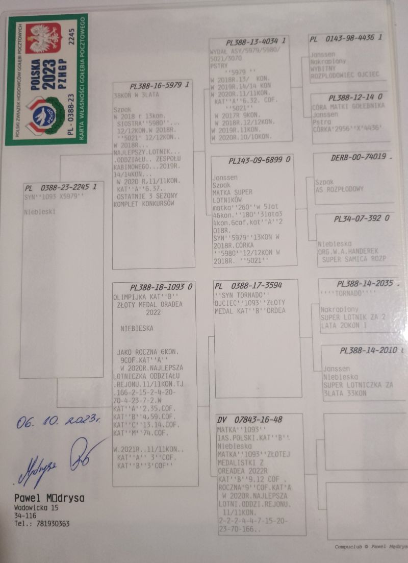 Oryginalny gołąb z hodowli Ogłaska Arkadiusz. Szczegóły pochodzenia w rodowodzie. Więcej informacji pod nr tel.784380685