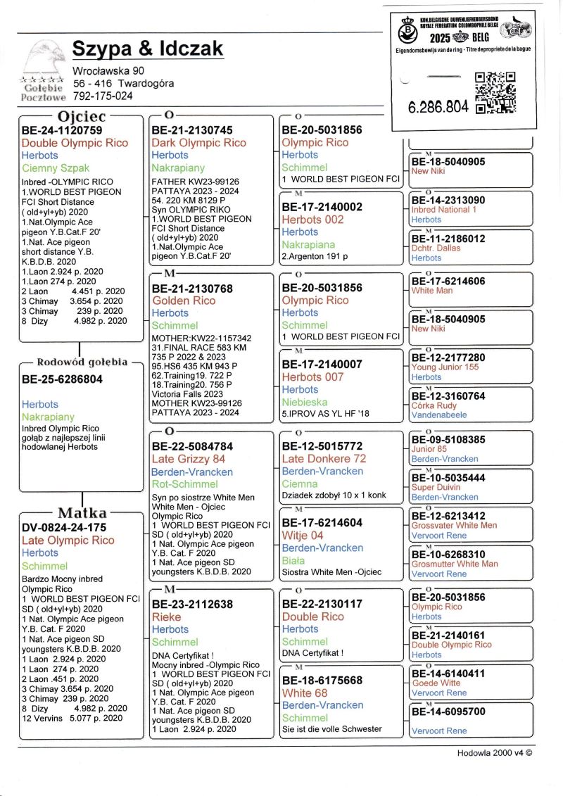 BE-25-6286804 - MOCNY INBRED OLYMPIC RICO