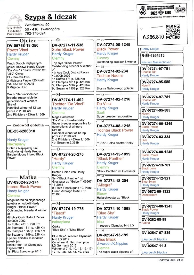 Profesjonalna hodowla z wieloletnim doświadczeniem, posiadająca w swoim stadzie materiał najwyższej światowej klasy. Więcej informacji w załączonych materiałach oraz pod nr tel. 792-175-024 Oferowany gołąb to prawdopodobnie SAMIEC. Płeć pisana orientacyjnie Wysyłka 100 zł