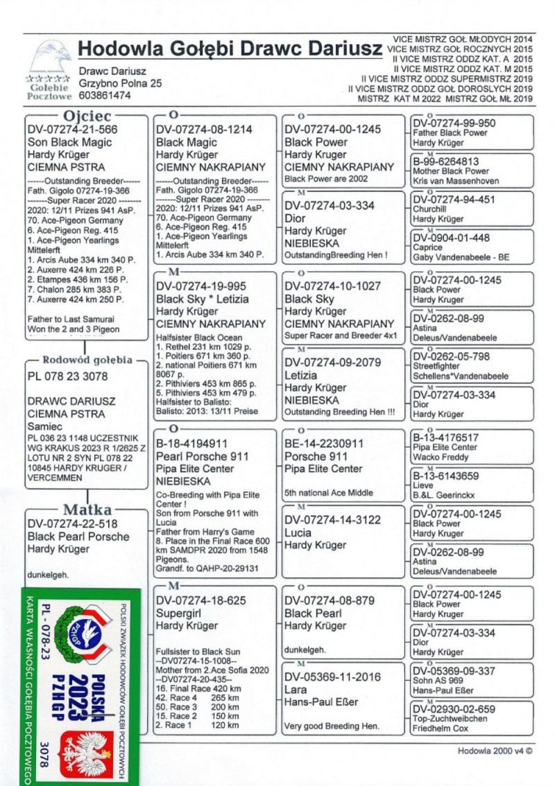 Oryginalny gołąb z hodowli Dariusz Janas . Szczegóły pochodzenia w rodowodzie . Więcej informacji pod nr. tel . 502581334 .... Wystawiany gołąb to prawdopodobnie samiec......... koszt transportu do 3 szt. 120 zł.