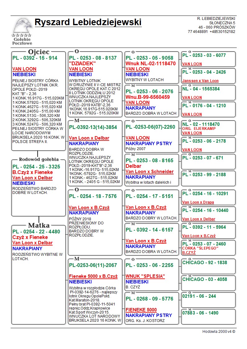 Oryginalny gołąb z hodowli Ryszarda Lebiedziejewskiego. Szczegóły pochodzenia w rodowodzie. Oferowany gołąb to prawdopodobnie samiec. Więcej informacji pod nr 530 152 182. Gołębie po kuracjach przygotowane do sezonu. Transport gołębi prywatnym kurierem 130zł do 3 szt. od 4 szt. do 6 szt. 150 zł. Możliwość odbioru na Ogólnopolskiej Wystawie Gołębi Pocztowych w Katowicach, w sobotę (10.01.2026r).
