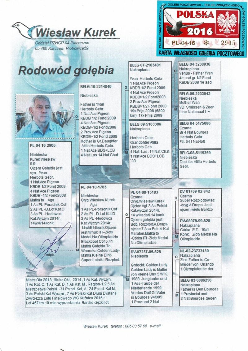 Oryginalny gołąb z hodowli - Wiesław Kurek. Więcej informacji w rodowodzie oraz pod numerem telefonu: +48 515 143 940