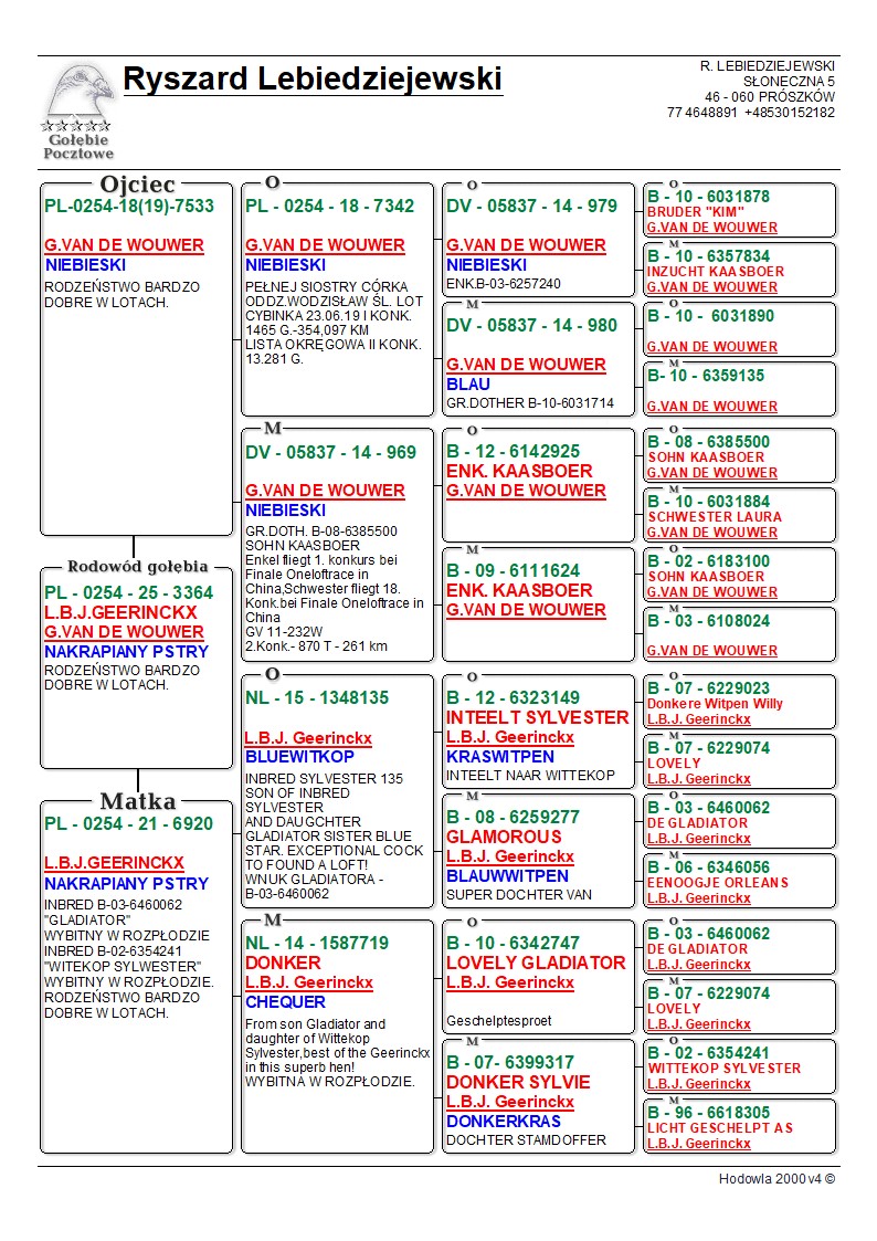 Oryginalny gołąb z hodowli Ryszarda Lebiedziejewskiego. Szczegóły pochodzenia w rodowodzie. Oferowany gołąb to prawdopodobnie samiec. Więcej informacji pod nr 530 152 182. Gołębie po kuracjach przygotowane do sezonu. Transport gołębi prywatnym kurierem 130zł do 3 szt. od 4 szt. do 6 szt. 150 zł. Możliwość odbioru na Ogólnopolskiej Wystawie Gołębi Pocztowych w Katowicach, w sobotę (10.01.2026r).