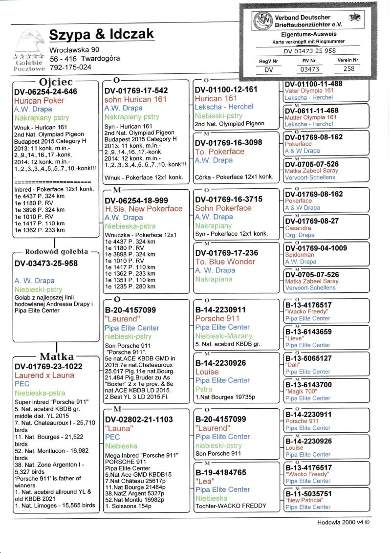 Profesjonalna hodowla z wieloletnim doświadczeniem, posiadająca w swoim stadzie materiał najwyższej światowej klasy. Więcej informacji w załączonych materiałach oraz pod nr tel. 792-175-024 Oferowany gołąb to prawdopodobnie SAMIEC. Płeć pisana orientacyjnie Wysyłka 100 zł