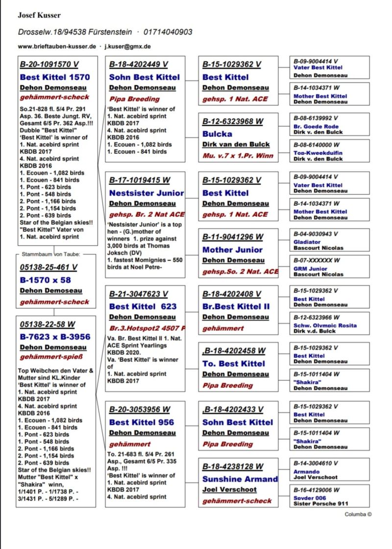 DV-05138-25-461 inbred BEST KITTEL- Josef Kusser 4 miejsce w Niemczech gołębi młodych 2025!