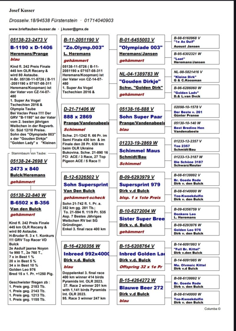 DV-05138-24-2698 Prawnuk "Olympiade 003"/Dirk v.d.Bulck-Josef Kusser 4 miejsce w Niemczech gołębi młodych 2025!