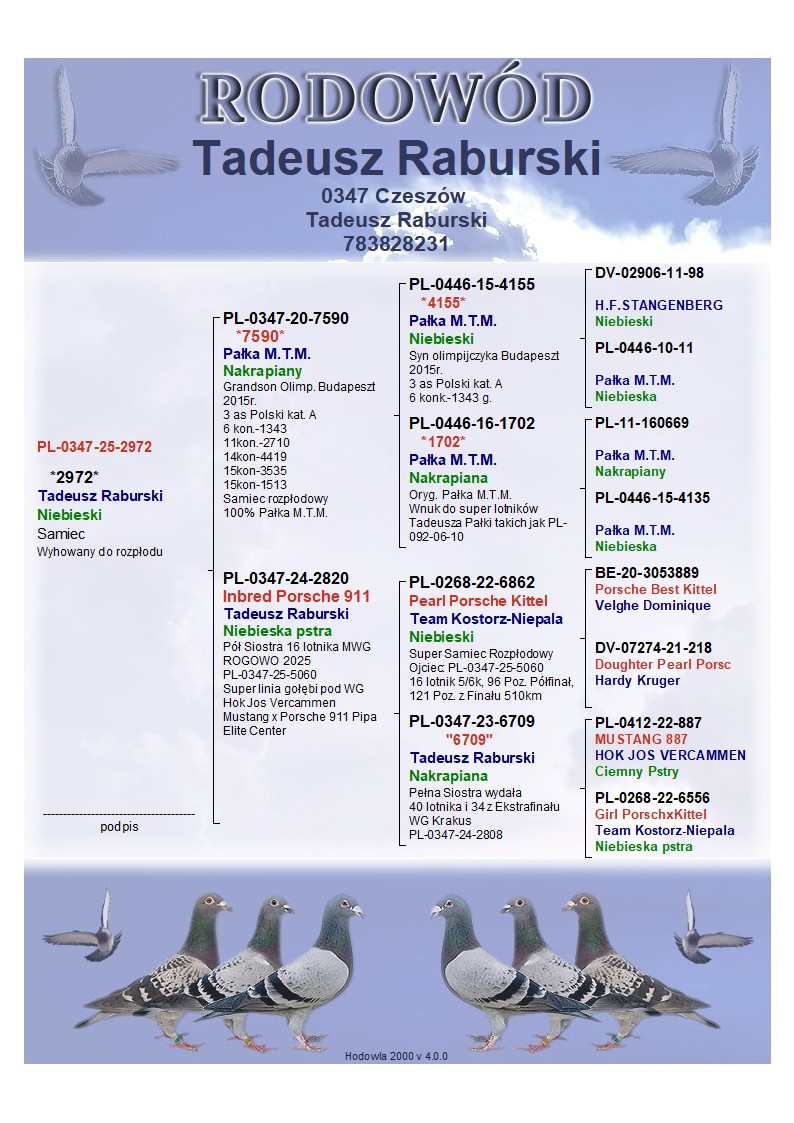 Hodowla skupiona w lotach gołębi na wspólnych gołębnikach z wieloma sukcesami. Zaprasza Państwa do licytacji wartościowego materiału do dalszej hodowli. Proponowany gołąb to wnuk olimpijczyka Budapeszta x półsiostra 16ASA /4057g. MWG Rogowo. Brat 21 AS WG do finału Linia moich bazowych par rozpłodowych, wielu kuzynów osiąga sukcesy na wspólnych gołębnikach, i nie tylko. Więcej informacji w rodowodzie oraz pod nr. tel. UWAGA WYSYŁKA PRYWATNYM KURIEREM LUB ODBIÓR OSOBISTY, LUB ODBIÓR NA WYSTAWIE OGÓLNOPOLSKIEJ