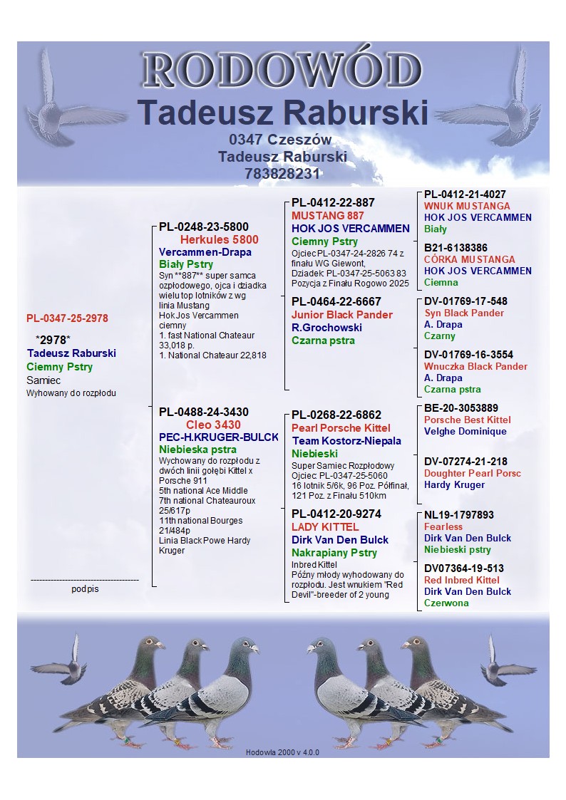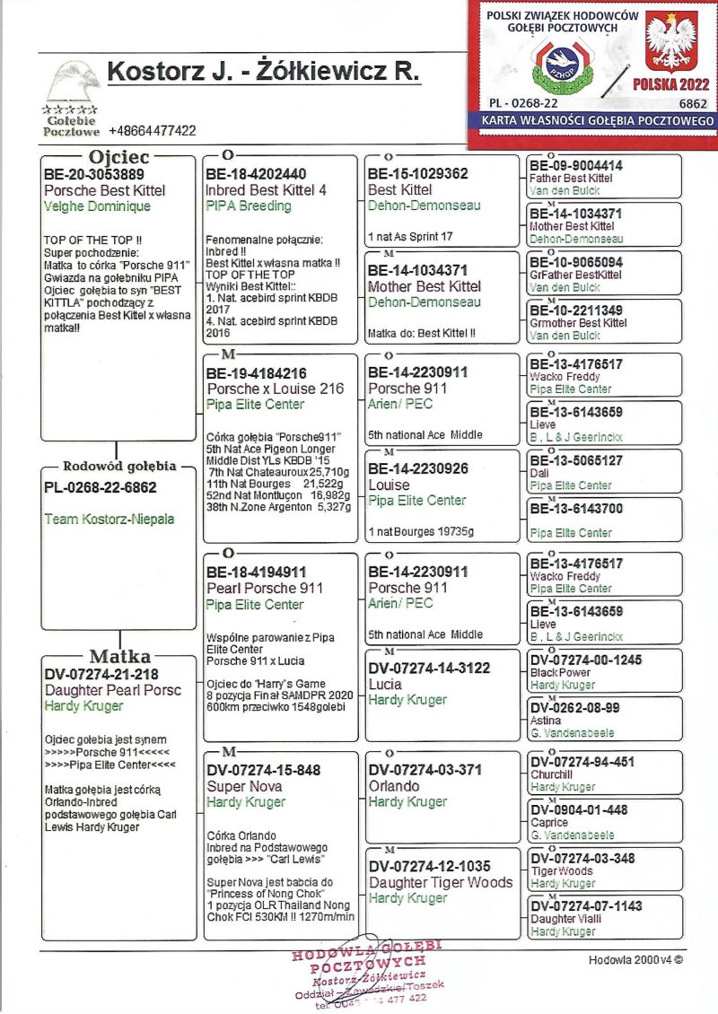 Hodowla skupiona w lotach gołębi na wspólnych gołębnikach z wieloma sukcesami. Zaprasza Państwa do licytacji wartościowego materiału do dalszej hodowli. Proponowany gołąb to linia moich dwóch bazowych par rozpłodowych, wielu kuzynów osiąga sukcesy na wspólnych gołębnikach. Więcej informacji w rodowodzie oraz pod nr. tel. WYSYŁKA PRYWATNYM KURIEREM LUB ODBIÓR OSOBISTY.