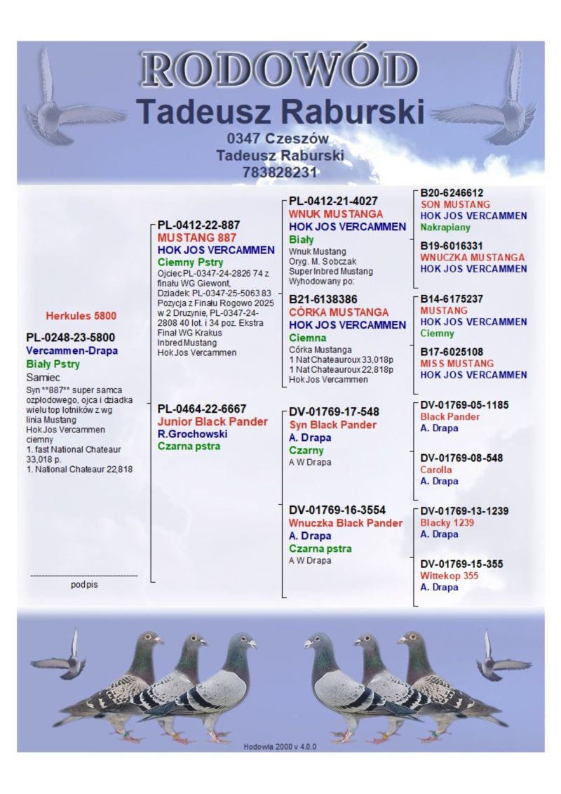 Płeć: samiec Hodowca - rasa: Tadeusz Raburski Zakończenie: 8.01.2028 godz. 17:50