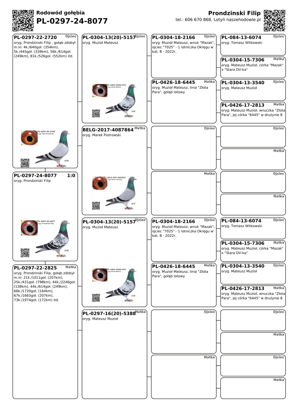 oryg. Prondzinski Filip Szczegóły pochodzenia w rodowodzie i załączonych materiałach. Więcej informacji o gołębiach i transporcie pod nr tel.: 606 670 868.