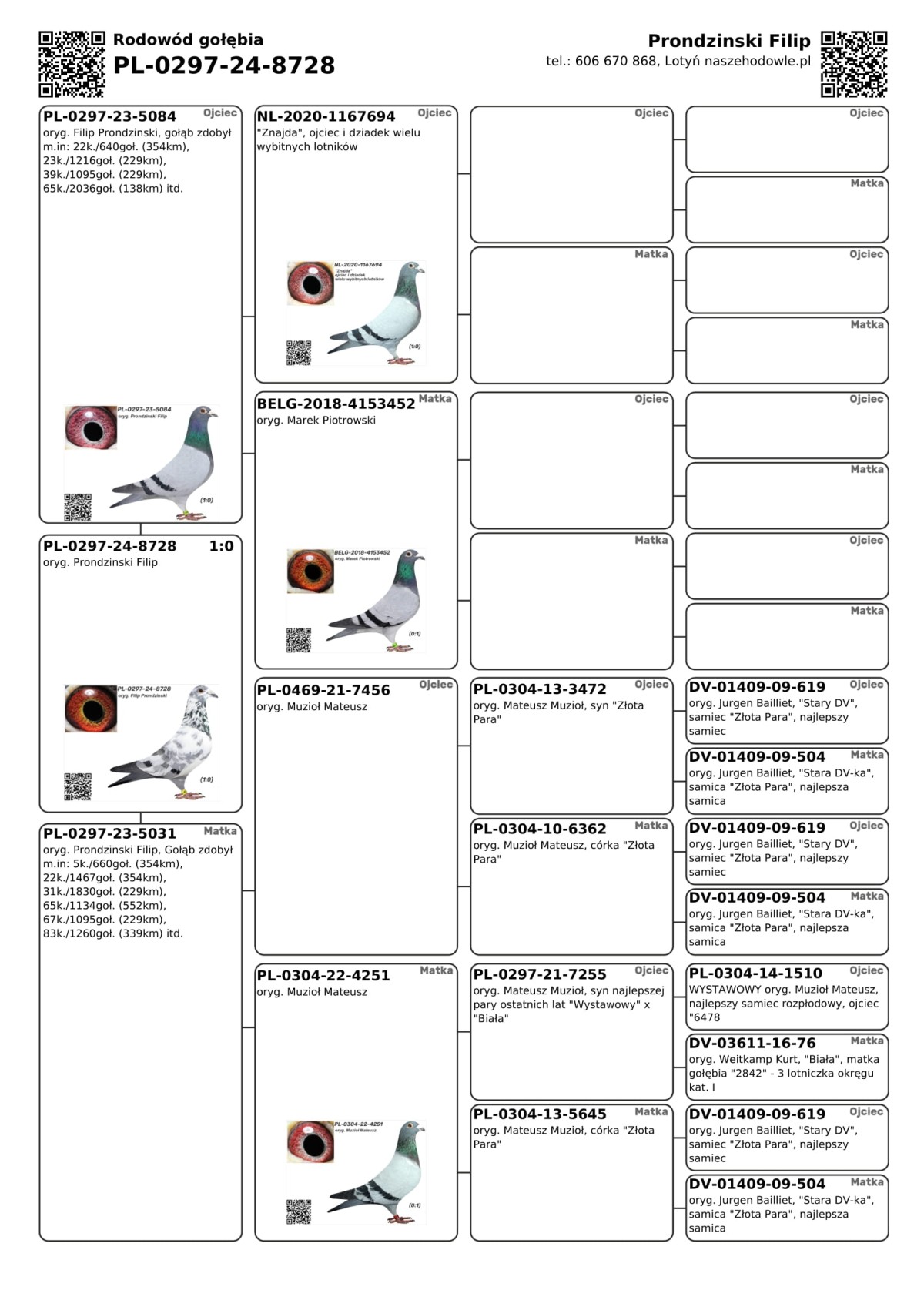 oryg. Prondzinski Filip Szczegóły pochodzenia w rodowodzie i załączonych materiałach. Więcej informacji o gołębiach i transporcie pod nr tel.: 606 670 868.