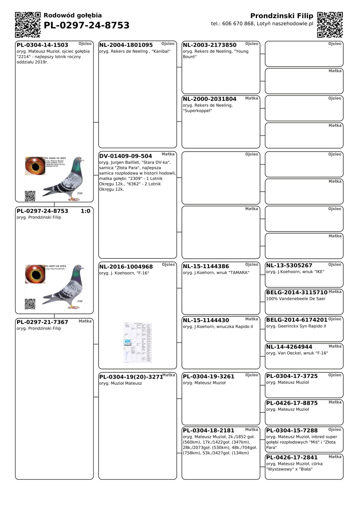 oryg. Prondzinski Filip Szczegóły pochodzenia w rodowodzie i załączonych materiałach. Więcej informacji o gołębiach i transporcie pod nr tel.: 606 670 868.