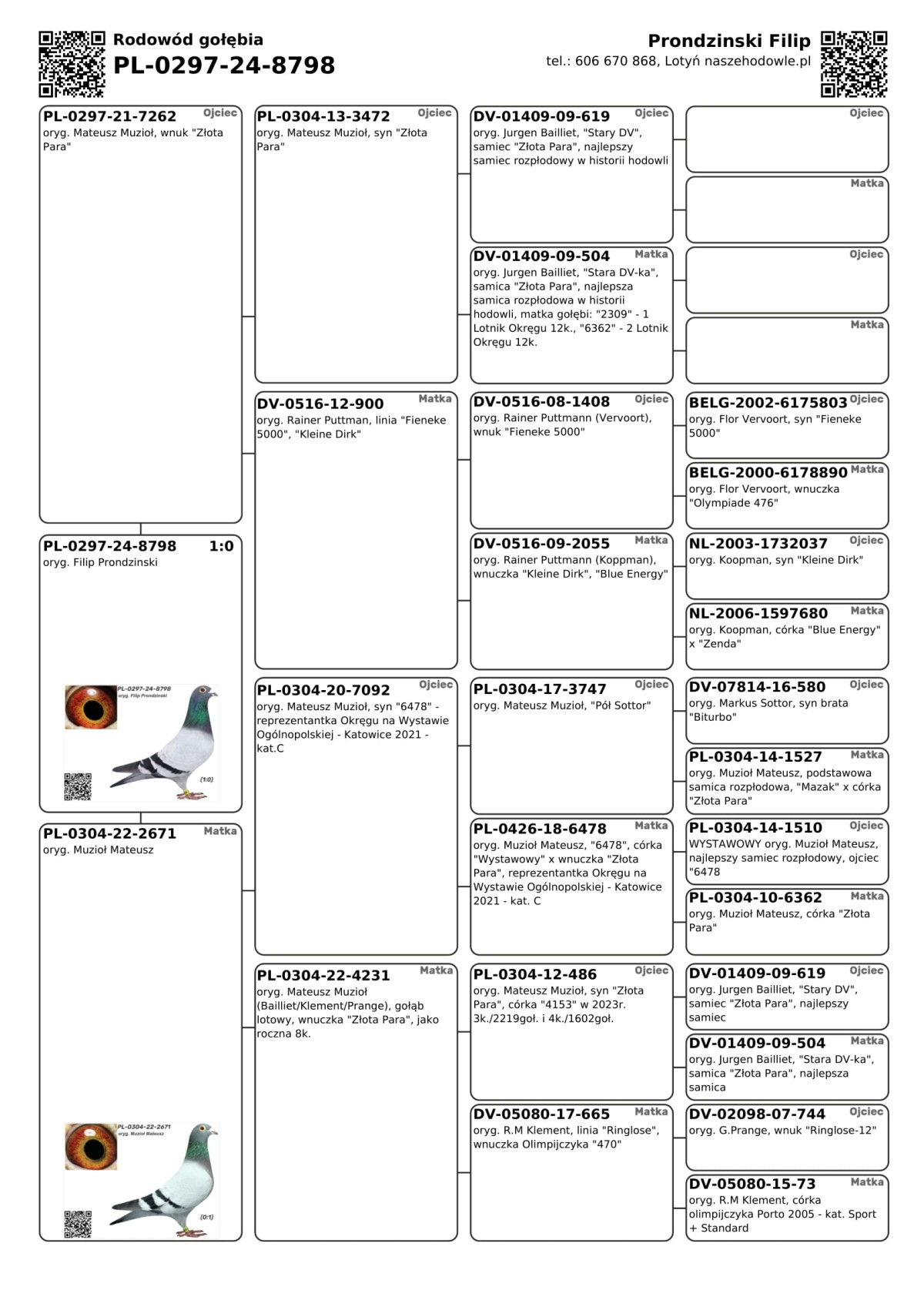 oryg. Filip Prondzinski Szczegóły pochodzenia w rodowodzie i załączonych materiałach. Więcej informacji o gołębiach i transporcie pod nr tel.: 606 670 868.