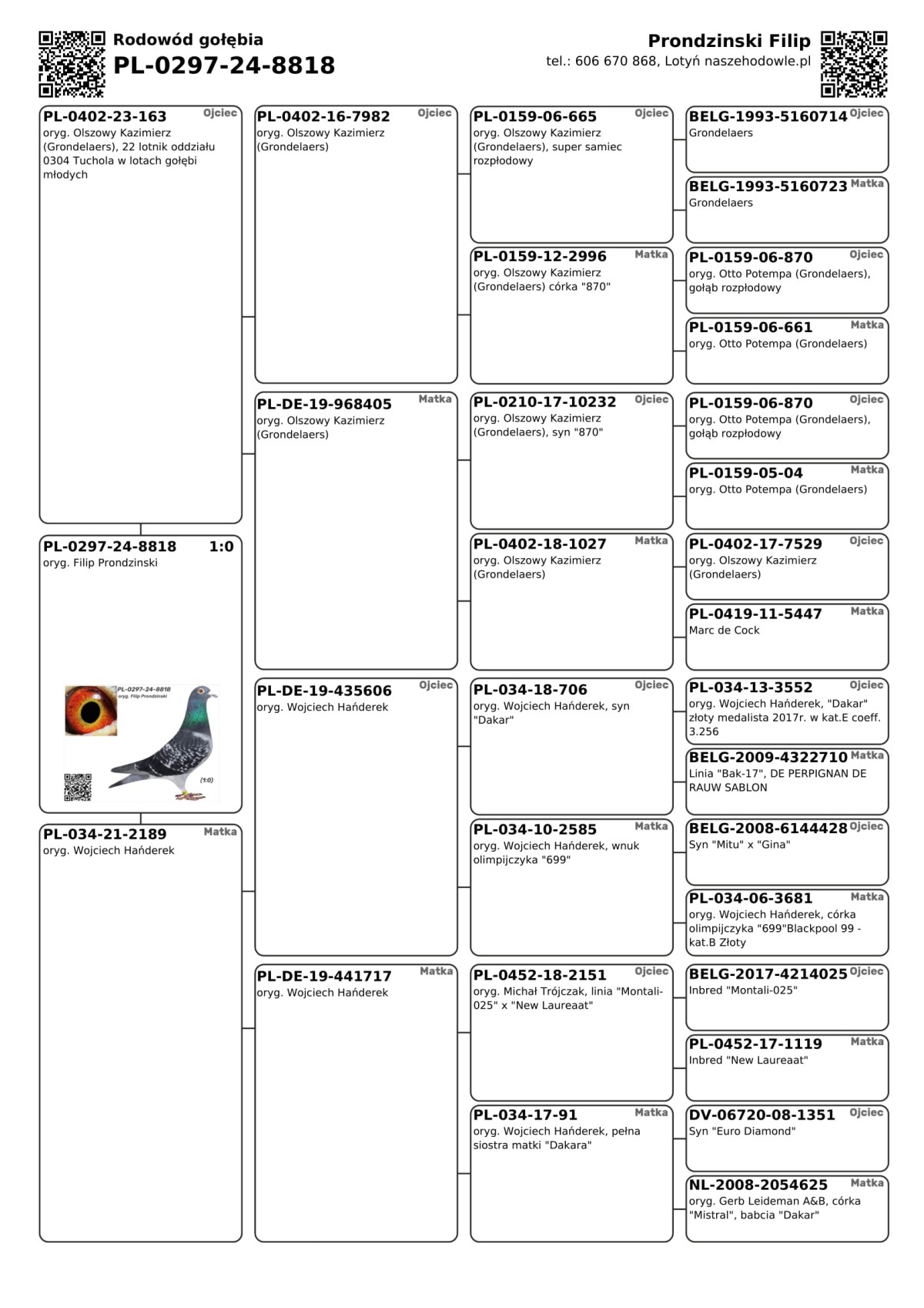 oryg. Filip Prondzinski Szczegóły pochodzenia w rodowodzie i załączonych materiałach. Więcej informacji o gołębiach i transporcie pod nr tel.: 606 670 868.