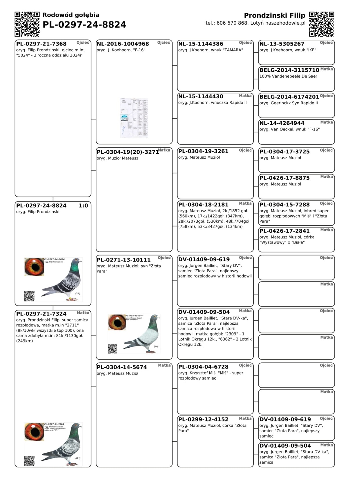 oryg. Filip Prondzinski Szczegóły pochodzenia w rodowodzie i załączonych materiałach. Więcej informacji o gołębiach i transporcie pod nr tel.: 606 670 868.