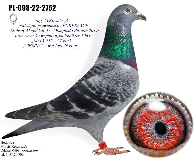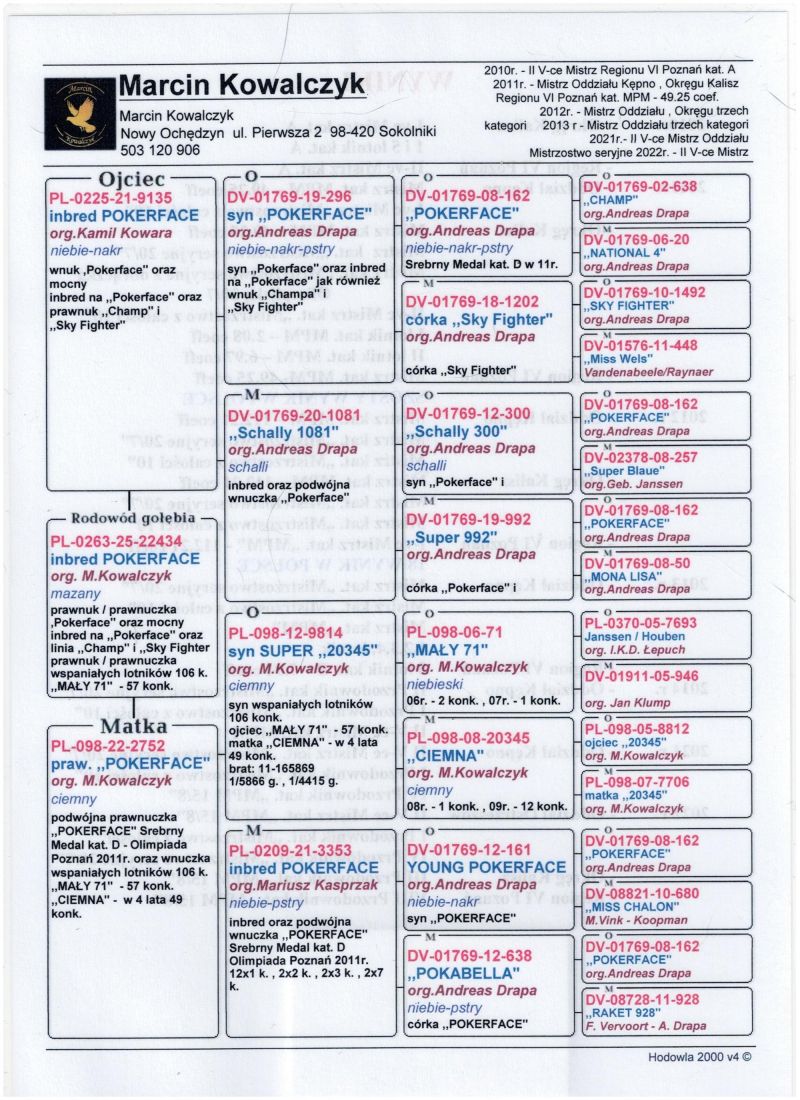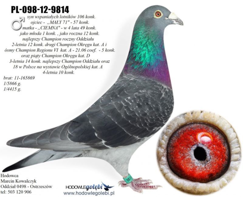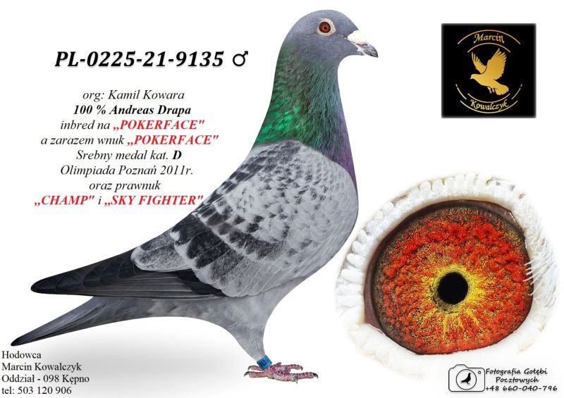 Oryginalny gołąb z hodowli Marcin Kowalczyk.# Szczegóły pochodzenia w rodowodzie. # Gołąb zaszczepiony przeciw Paramyxowirozie, Herpeswirus, Adenowirus , Ospa. # Więcej informacji pod nr tel. 503 120 906 # Możliwy transport koszt 1-3 szt. 120 zł , 3-6 szt. 140 zł # MOŻLIWY ODBIÓR NA WYSTAWIE W KATOWICACH (sobota)prawdopodobnie SAMIEC