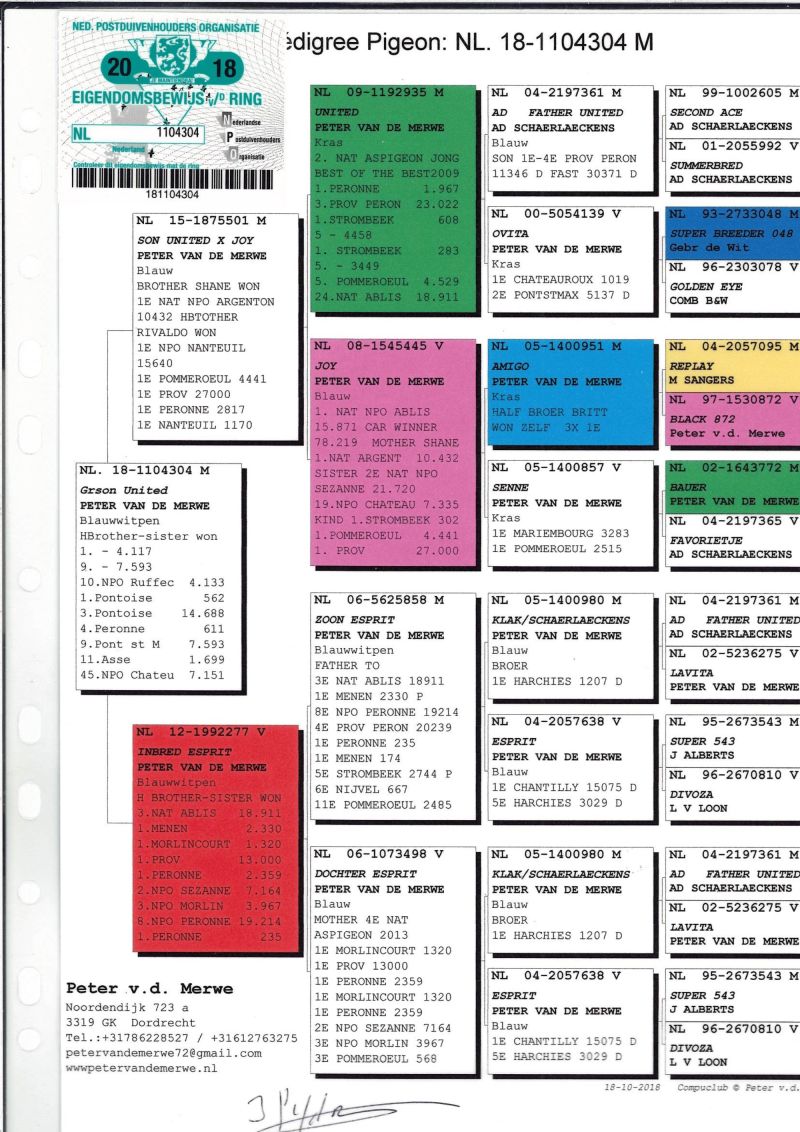 Oryginalny gołąb z hodowli Peter van de Merwe, szczegóły pochodzenia w rodowodzie. Dostawa gołębi będzie realizowana po zakończeniu aukcji przez kuriera - 150zł. Możliwość odbioru na Wystawie Ogólnopolskiej (Sobota). Gołębie nie będą sprzedawane po za aukcją!