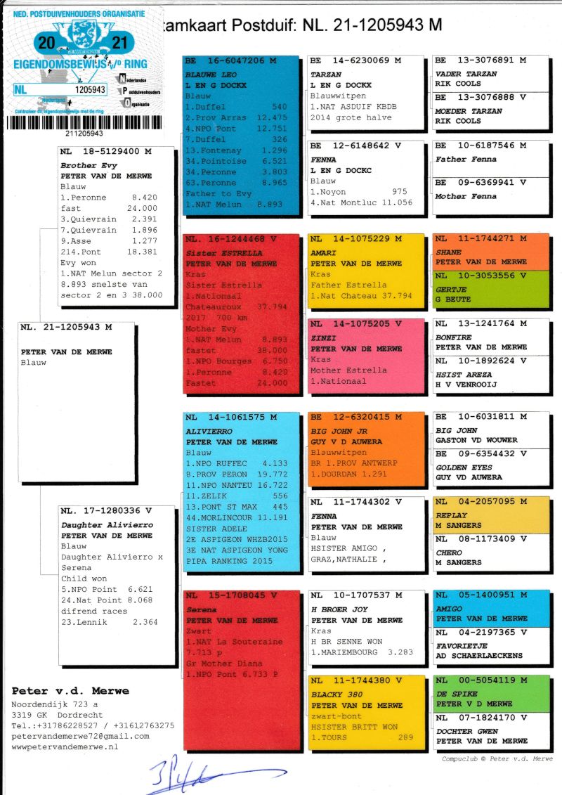 Oryginalny gołąb z hodowli Peter van de Merwe Wnuk "Alivierro", szczegóły pochodzenia w rodowodzie. Dostawa gołębi będzie realizowana po zakończeniu aukcji przez kuriera - 150zł. Możliwość odbioru na Wystawie Ogólnopolskiej (Sobota). Gołębie nie będą sprzedawane po za aukcją!