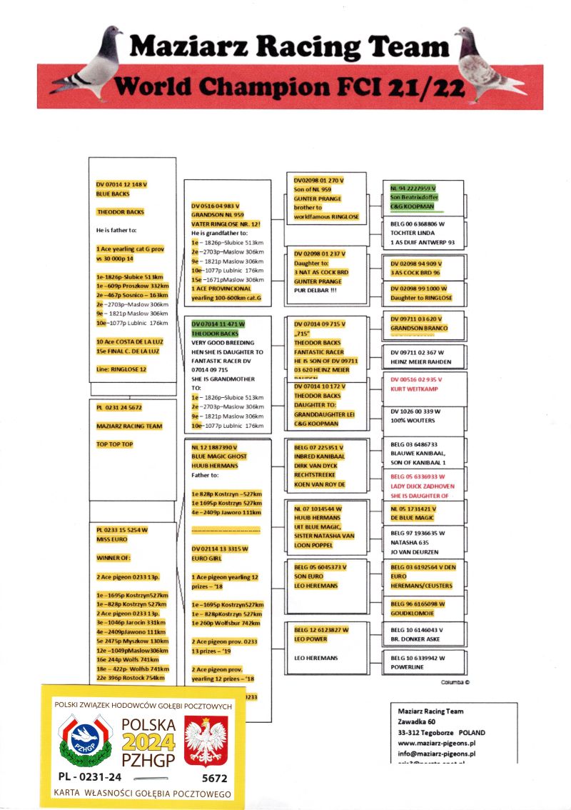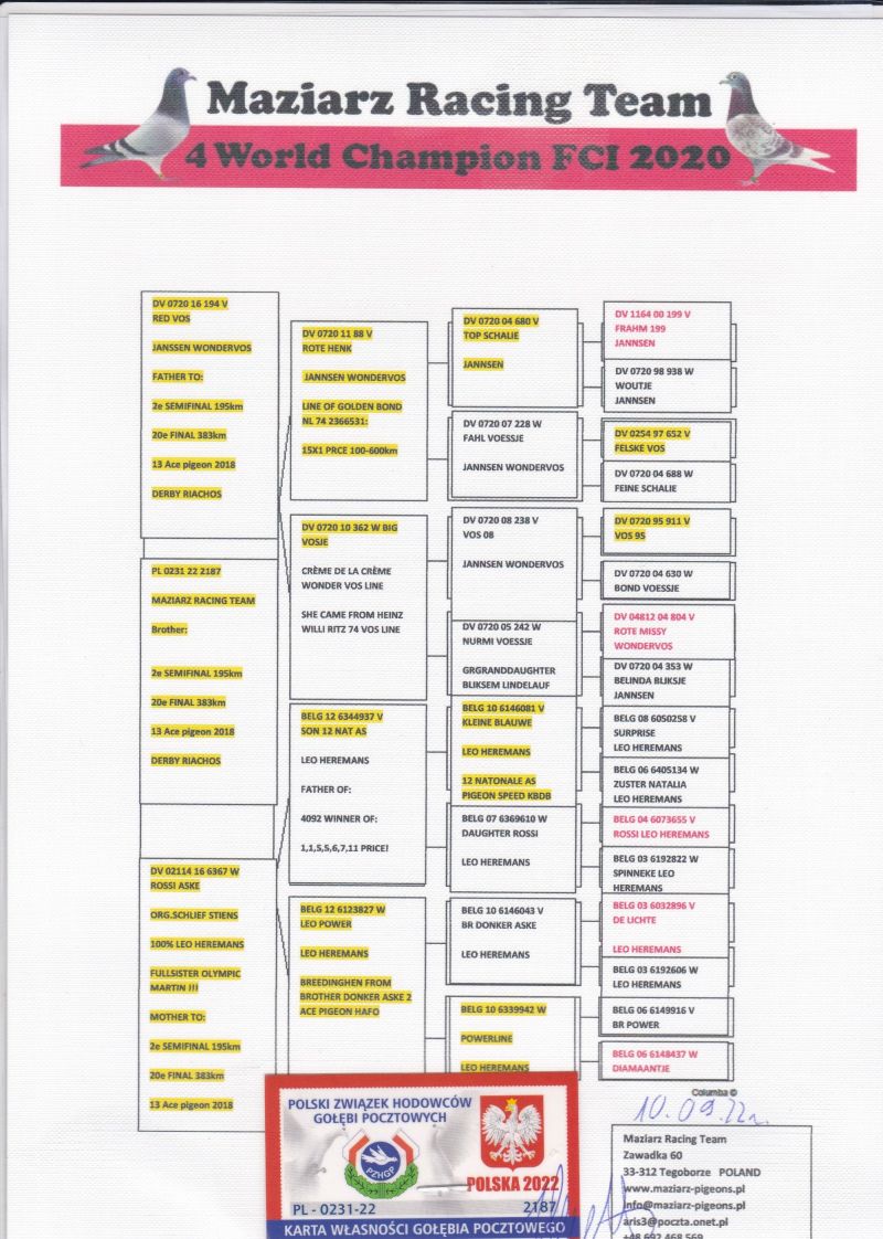 PL-0217-25-7880 *** TOP *** siostra 24. na DERBY 505 km !!! 100% Arkadiusz MAZIARZ "RED VOS", "MISS EURO"... *** TOP *** odbiór m.in. WYSTAWA OGÓLNOPOLSKA ***