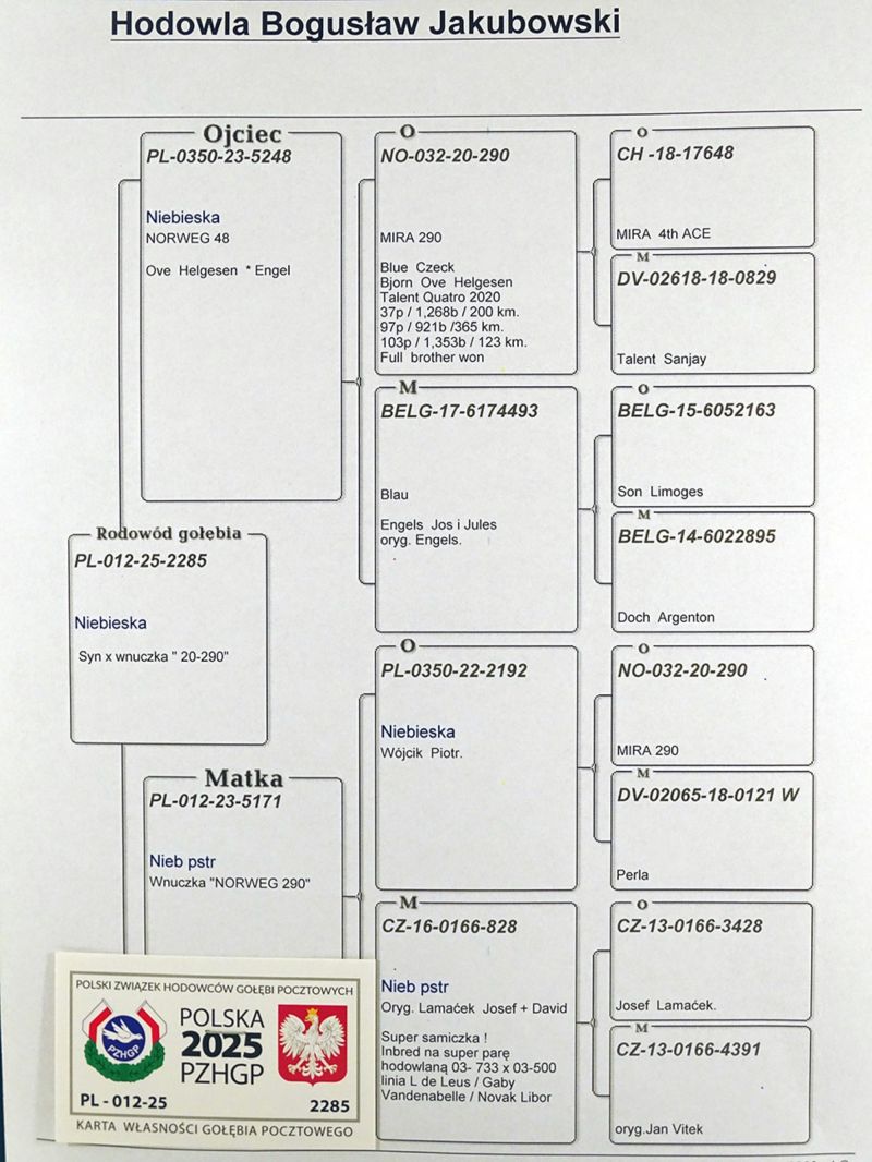 Młody wychowany w bliskim pokrewieństwie syn x wnuczka "290" Szczegóły w zamieszczonym rodowodzie.