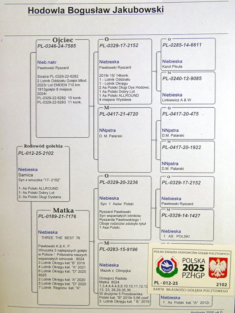 Samiczka wychowana w bliskim pokrewieństwie syn x wnuczka "17-2152" 1 AS Polski ALLROUND hodowca Ryszard Pawłowski. Szczegóły w zamieszczonym rodowodzie.