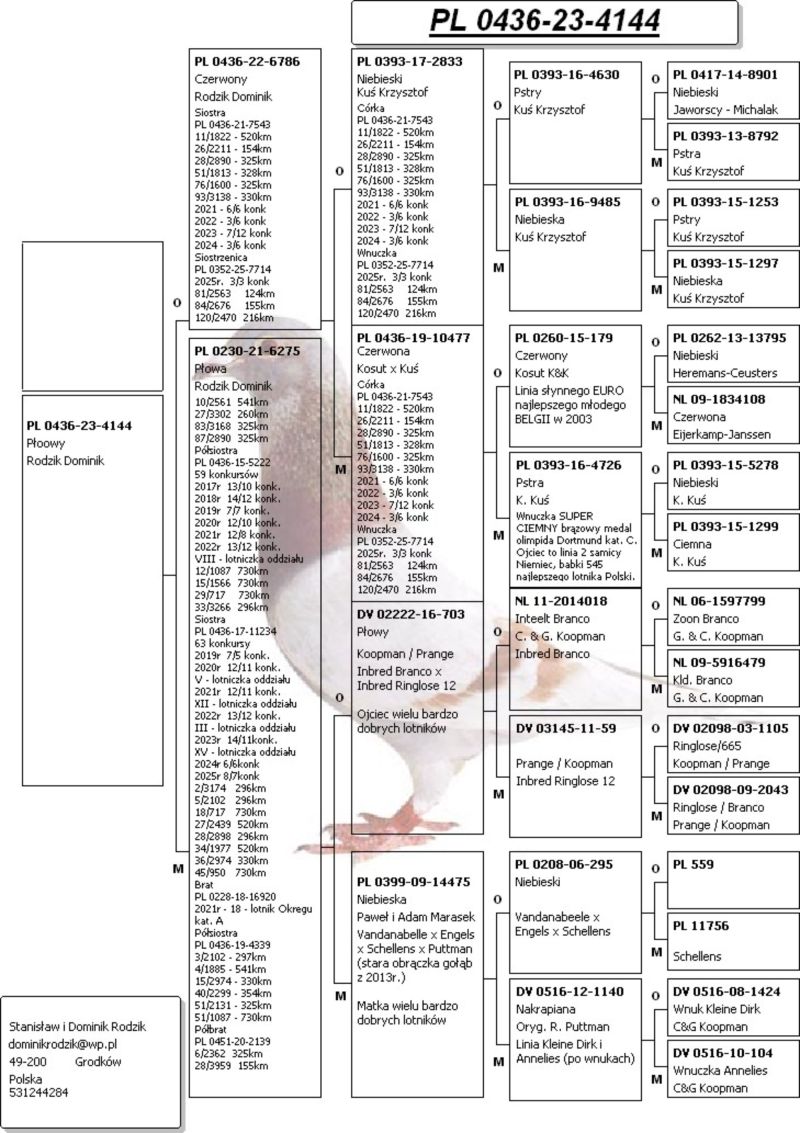 Szczegóły pochodzenia w rodowodzie. Płatność za gołębia na konto w terminie 3 dni po zakończeniu aukcji. Wysyłka do uzgodnienia wg aktualnych możliwości wysyłkowych na adres kupującego 150zł lub na wystawę ogólnopolską w sobotę 10.01.26 w godzinach 8-12.