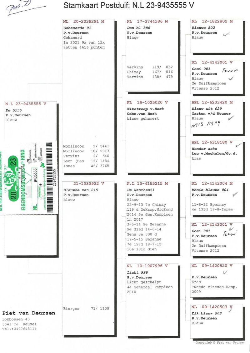 Oryginalny gołąb z hodowli - Piet van Deursen. Więcej informacji w rodowodzie oraz pod numerem telefonu: 509 924 243