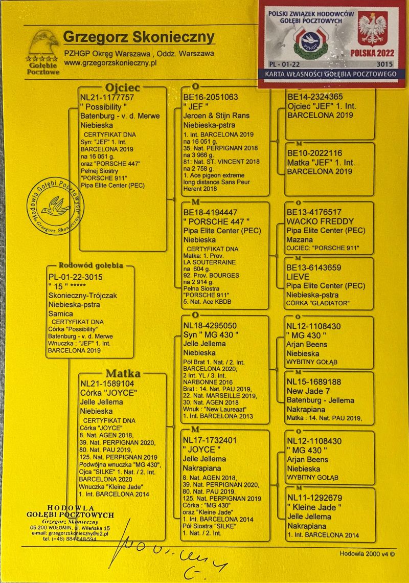 Oryginalny gołąb z hodowli - Grzegorz Skonieczny. Więcej informacji w rodowodzie oraz pod numerem telefonu: 509 924 243