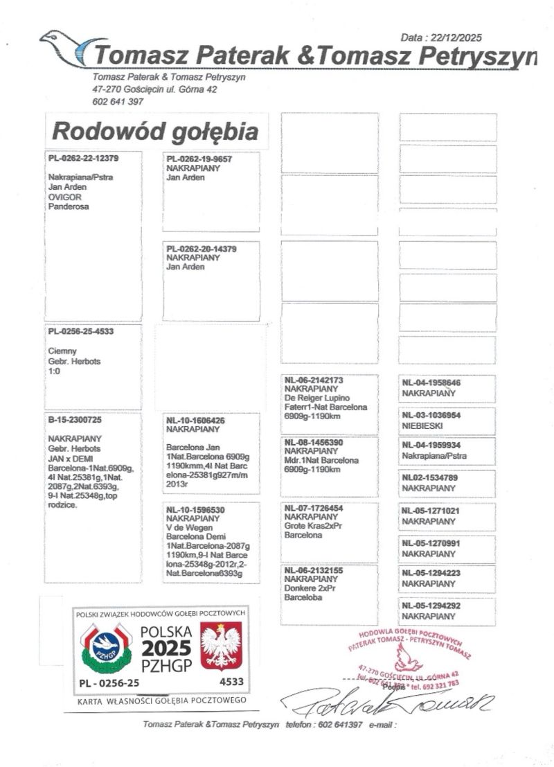 TYLKO KUP TERAZ Oryginalny gołąb z hodowli Tomasz Paterak & Tomasz Petryszyn. Więcej informacji pod nr tel. 692321783, 602 641 397 Możliwy darmowy odbiór na Wystawie Ogólnopolskiej Katowice.