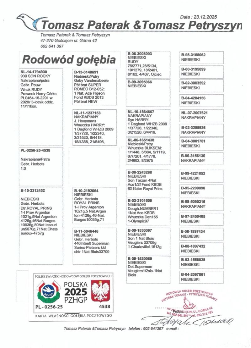 PL-0256-25-4538 – Gaby Vandenabeele x Gebr. Herbots oryg. Tomasz Paterak & Tomasz Petryszyn TYLKO KUP TERAZ